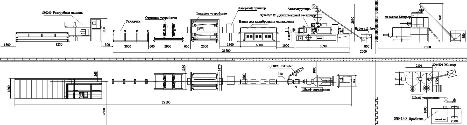 Состав линии для производства ПВХ труб: